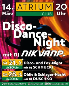 - Februar 2026 im AtriumDer Kinderfasching, die Faschings- & Valentinstag-DANCE-NIGHT, die Faschings-PARTY und das KULT-Dance-Clubbing sind unsere Events im Februar. Lasst uns gemeinsam richtig feiern🎉🪩